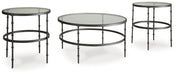 | Details | Includes coffee table and 2 end tables, Made with metal, Gunmetal finish, Inset tempered glass tabletops, Assembly required | |
