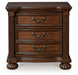 Take inspiration from the traditional luxury of this nightstand. Classic with a rich cherry brown finish, its stately presence graces your room with an air of opulence. Your taste for exquisite details is satisfied with decorative drawer pulls and chic bun feet. And with a hidden pull-out tray for valuables, bedside convenience has never been so refined.