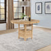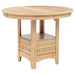 This counter height table invites connection through thoughtful design and graceful adaptability. With a removable leaf, the surface transitions from a compact 42 inch round to an extended 60 inch oval, rising to counter height to create a more casual, conversational dining experience. A sculpted central base provides visual balance while offering generous leg room and discreet leaf storage below. Crafted from solid rubberwood, engineered wood, and oak veneer, the tabletop reveals soft grain detail and a smooth, refined touch. Designed to elevate both space and moments, this table moves seamlessly from everyday dining to shared gatherings.