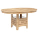 • Dining table with oval wood top expands from 42 inch round to 60 inch dining surface