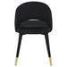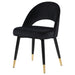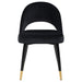Add a touch of retro-inspired elegance to your dining room with this stylish dining side chair, featuring an elegant bucket-style seat that embodies Mid-Century modern charm. Wrapped in luxurious velvet, each chair provides a supportive, long-lasting seating experience, making it perfect for hosting dinner guests or enjoying a cozy meal. The flared, tapered legs, finished with dramatic gold-capped feet, add a regal Hollywood glam touch that enhances any dining space. This versatile chair effortlessly complements various color palettes and brings a bold statement to both formal and casual settings. Pull these chairs up to a spacious rectangular dining table to create an inviting and chic atmosphere for any gathering.