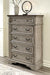 | Details | B751B5: Includes California king headboard, footboard and rails, Made with acacia wood, birch and acacia veneers, engineered wood and cast resin components, Antiqued gray finish, Ornately shaped headboard with inset upholstered cushion, Foundation/box spring required, sold separately, Mattress not included, sold separately, Assembly required, B751B1: Includes dresser and mirror, Made with acacia wood, birch and acacia veneers, engineered wood and cast resin components, Two-tone finish; antiqued gray body with a rich, deep walnut brown finish on top, Dark bronze-tone bails and knobs, 7 smooth-gliding drawers with dovetail construction, Framed drawer fronts , Overlay decorative corbels, Mirror attaches to back of dresser, Assembly required, B751-46: Made with acacia wood, birch and acacia veneers, engineered wood and cast resin components, Two-tone finish; antiqued gray body with a rich, deep walnut brown finish on top, Dark bronze-tone bails and knobs, 5 smooth-gliding drawers with dovetail construction, Framed drawer fronts, Overlay decorative corbels, B751-93: Made with acacia wood, birch and acacia veneers, engineered wood and cast resin components, Two-tone finish; antiqued gray body with a rich, deep walnut brown finish on top, Dark bronze-tone bails and knobs, 3 smooth-gliding drawers with dovetail construction, Framed drawer fronts, Overlay decorative corbels, 110V power supply with dual USB charging port, Power cord included; UL listed, | |