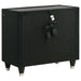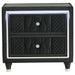 • Top drawer is black felt-lined and finished with crystal knobs and quilted texture