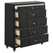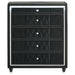 • Five-drawer chest fully wrapped in a black velvet for a layered plush effect