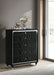• Tempered glass top, crystal knobs, and quilted textures elevate the glam aesthetic