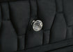 Embrace elegance in full velvet with this five-drawer chest, where ambient lighting meets refined craftsmanship. Upholstered in a stunning black velvet, each drawer is adorned with quilted textures, reflective acrylic accents, and crystal knobs for a soft yet glamorous presence. Integrated LED lighting casts a warm glow, while the black felt-lined top drawer, English dovetails, tempered glass top, and metal extension glides elevate everyday function. Supported by solid rubberwood legs, this chest blends softness with luminous charm.