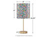 | Details | Made of metal with sequined fabric drum shade, On-off switch, 1 type A bulb (not included); 60 watts max or LED equivalent; UL Listed, Clean with a soft, dry cloth, Assembly required | |