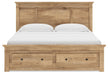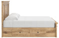 Looking to create a bedroom that feels airy and beautifully put together? This casually comfy king panel storage bed is your perfect solution. Its clean lines, replicated oak grain and on-trend natural finish exude a charming cottage-inspired feel that brightens your restful retreat. Spacious drawers with dark bronze-tone knobs stow away clothes and more. Now there’s a fresh take on country living we can get behind.