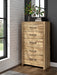 Approachable in character, this chest of drawers embodies fresh style that inspires. Its warm finish and replicated oak grain invite with homey charm, while details like sleek drawer pulls lend a contemporary attitude. From urban chic to modern farmhouse, this versatile piece seamlessly reflects your eye for design.