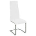 Sleek and sophisticated, this high-back side chair features a modern silhouette wrapped in crisp white leatherette. The ergonomic design provides excellent back support, while the armless, cantilever base offers a floating effect with retro flair. A polished chrome frame enhances the contemporary feel, making it an ideal complement to glass or high-gloss dining tables in modern interiors.