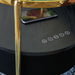 Details Made with engineered wood, glass and metal, Goldtone finish, Glass top, Black polyester fabric on sides, Tabletop with wireless charging and touch-button controls, 6.5" full-range speaker; 2" tweeter speaker, Wireless connection; aux audio input; USB-C charging, Assembly required