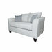 • Accent pillows complete the refined two-seater silhouette elegantly