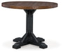 | Details | Includes dining table top and base, Made with pine solids, pine veneer and engineered wood substrate, Rustic black finish on base, Rustic brown finish on tabletop, Sturdy post and bracket base design, Assembly required | |