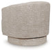 Relaxation meets refinement in this accent chair. With an ultra-soft fabric in a crisp, light neutral, it invites you to curl up in comfort. A 360-degree swivel provides added versatility. Drape a throw blanket over the back, or add an accent pillow for a pop of color—with this chair, the possibilities for cozy-contemporary style are endless.
