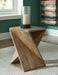 This accent table puts a new twist on vintage casual. Its brown finish is delightfully distressed, drawing attention to the saw mark planks arranged in an open architectural design. Place this unique piece next to a cozy chair to create a charming reading nook overflowing with visual intrigue.